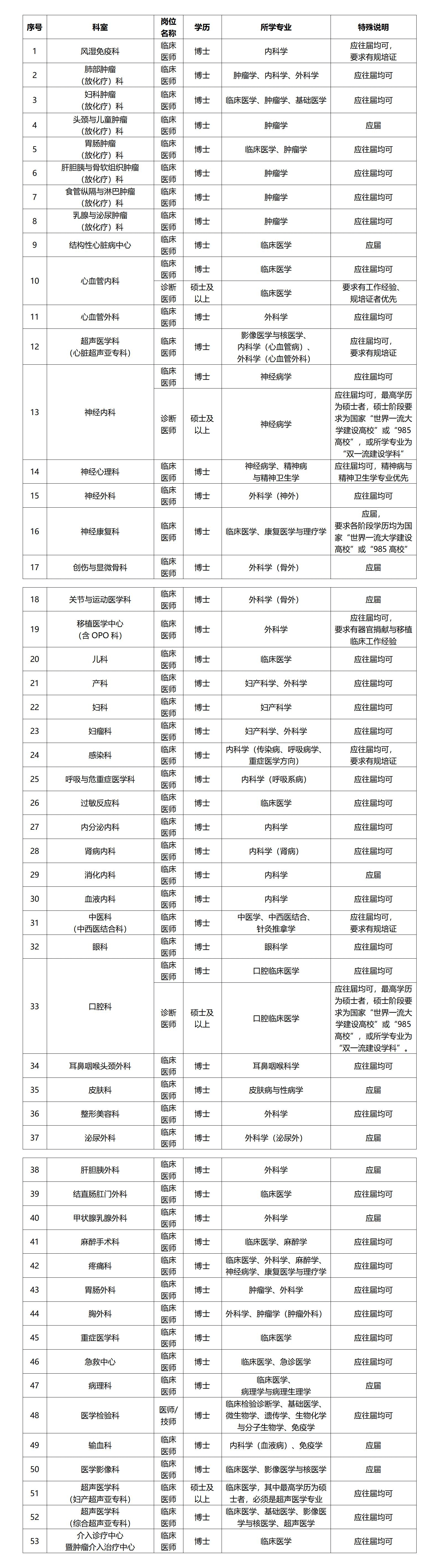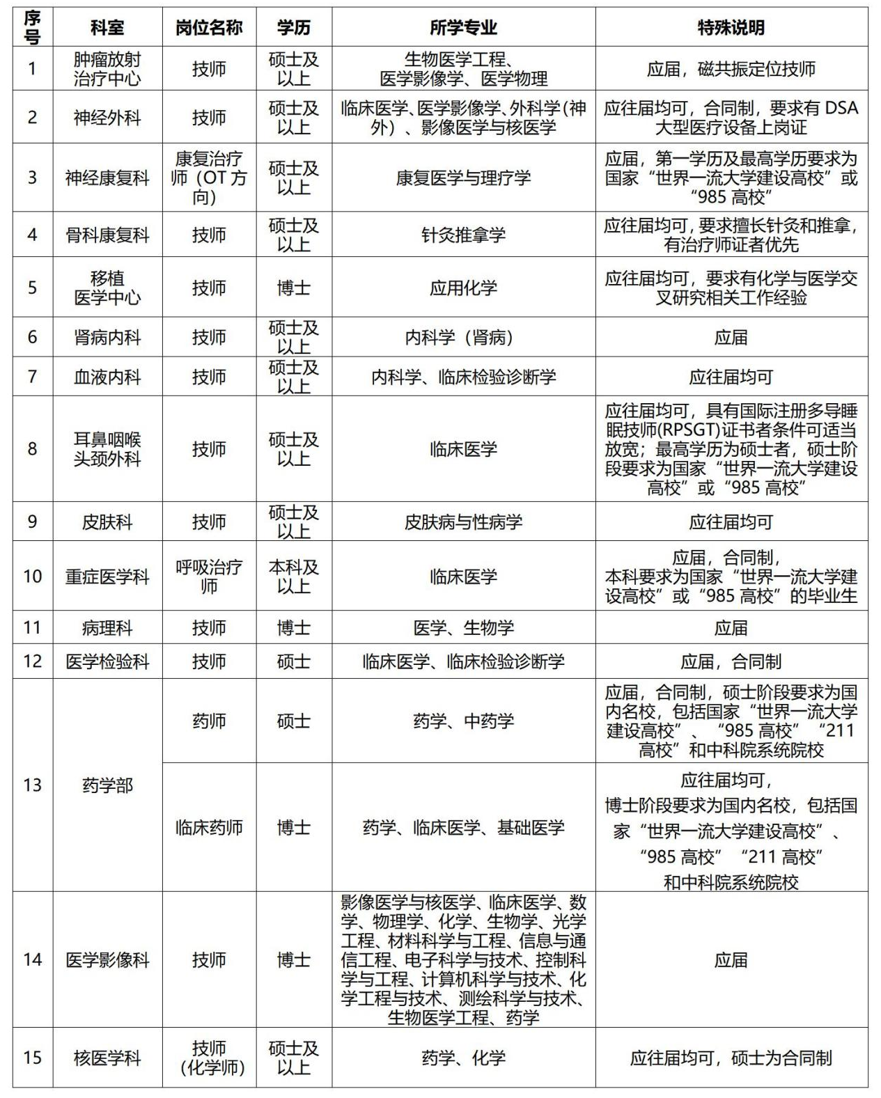 注:1、临床八年制博士应届毕业生可不受专业限制,应聘各科室。