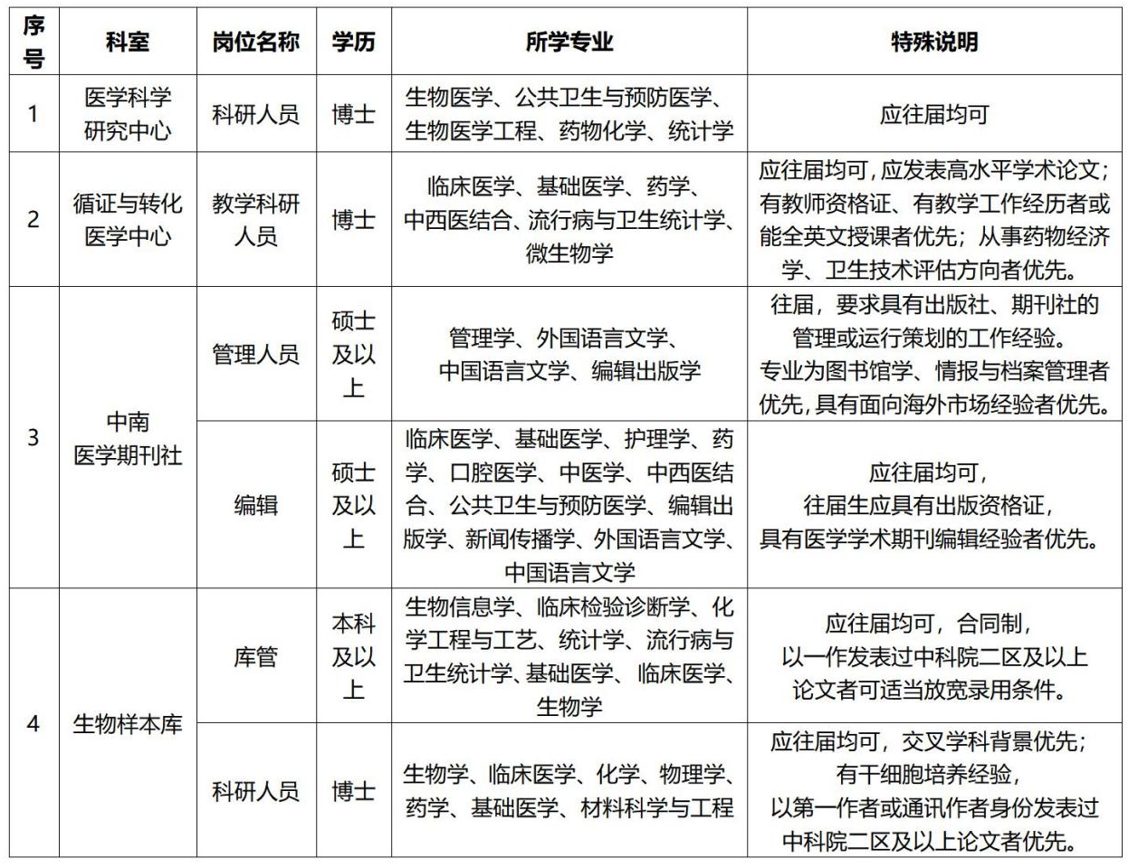 原文标题:武汉大学中南医院2023年医技岗位招聘公告