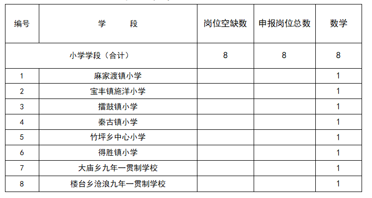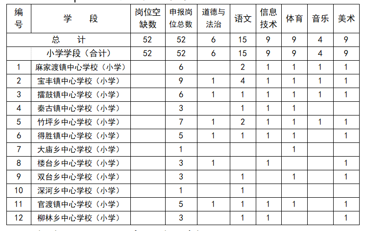 2023年竹山县面向社会公开招聘105名中小学及幼儿园教师。其中新机制初中教师岗位25名,新机制小学教师岗位8名,自主招聘小学教师岗位52名,幼儿园教师岗位20名。具体学段学科如下: