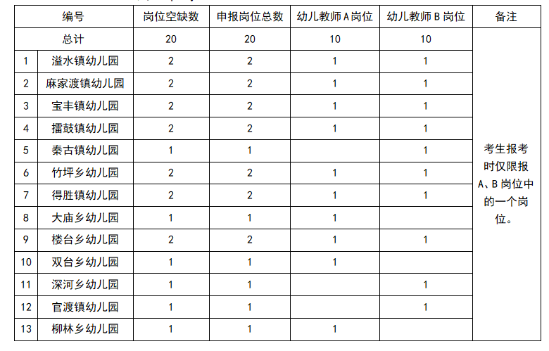(四)幼儿园教师岗位(20名)