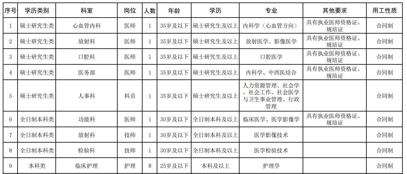 根据医院发展规划,按照公开、平等、竞争、择优的原则,现面向2022、2023年高校毕业生公开招聘合同制、派遣制工作人员,具体如下: