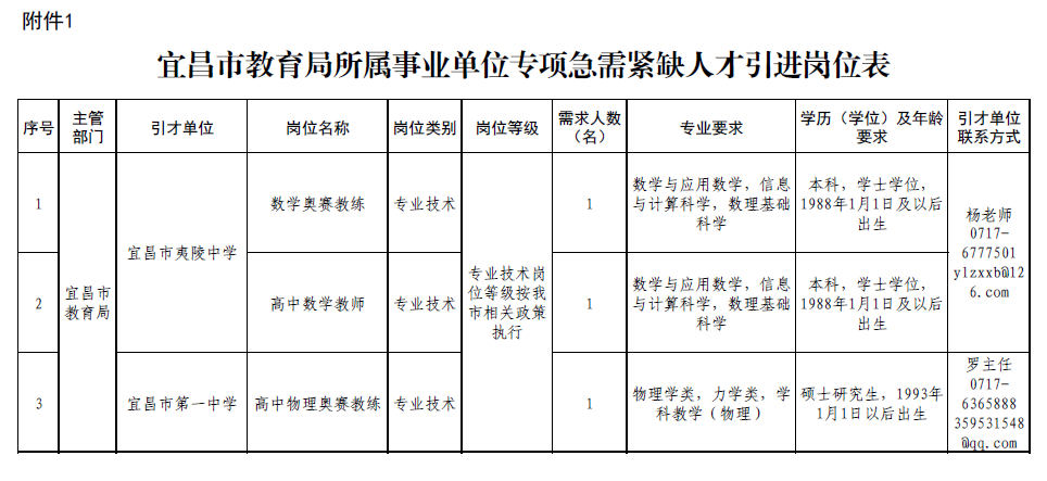 附件1. 宜昌市教育局所属事业单位专项急需紧缺人才引进岗位表.pdf