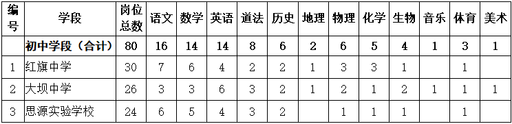 (二)地方自主招聘城镇教师岗位(初中80名普通岗):