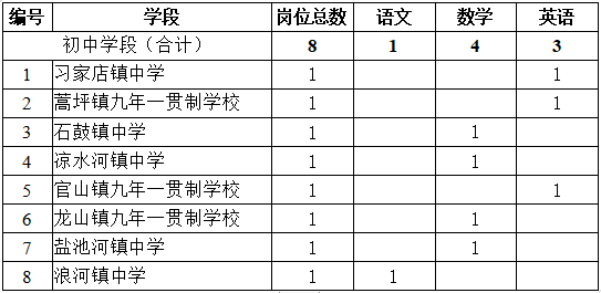 (三)地方自主招聘城镇教师岗位(初中2名退役军人专岗):