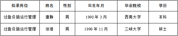 根据《湖北中水长江生态保护研究院有限公司公开招聘公告》要求,经完成相关招聘程序,研究决定拟录用唐静等2人为长江生态公司工作人员,现将有关基本情况予以公示。公示期间,如对拟录用人选有异议,请向公司综合部反映。