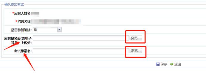 应聘报名表和考试承诺书按要求上传后,点击“保存”按钮保存上传。