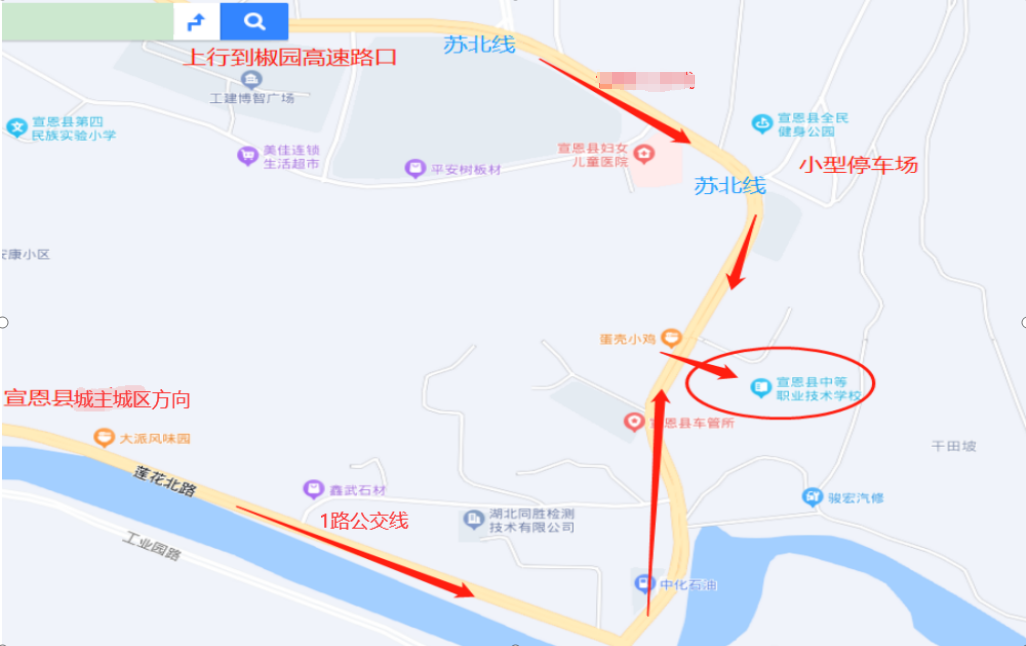 宣恩县城区内乘坐1路公交、椒园高速路口驾车至宣恩县职高站下车,请大家合理安排时间,避免迟到。