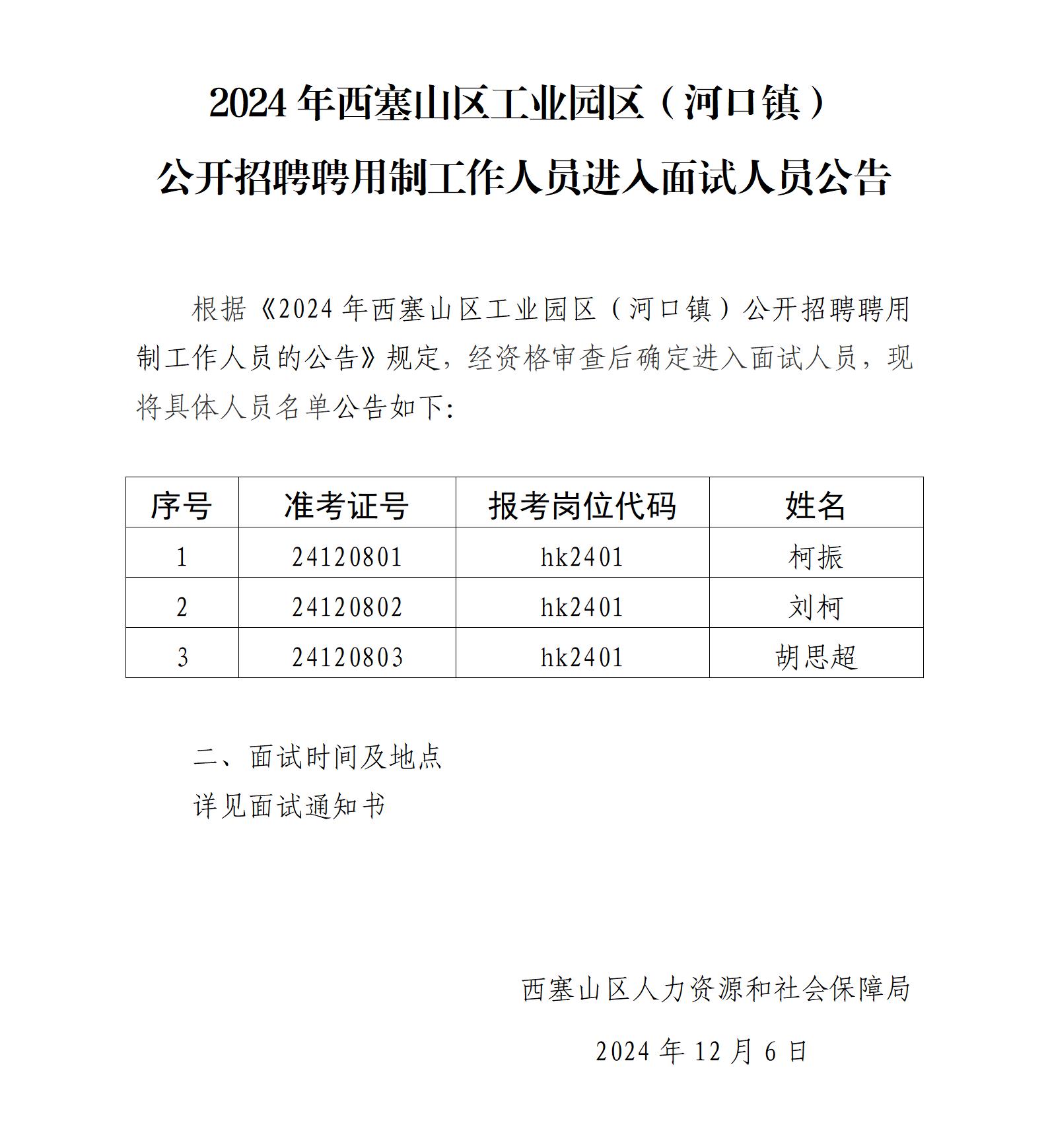 2024年西塞山区工业园区(河口镇)公开招聘聘用制工作人员进入面试人员公告
