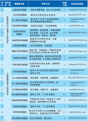 武汉理工大学管理学院因教学和科研需要,拟在管理科学与工程学科和工商管理学学科招聘优秀人才类教师和博士后研究人员若干名。