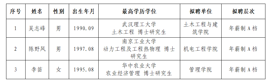 经学院(部)和人事处考查遴选,学校讨论决定拟引进下列教师岗位工作人员,现予以公示。