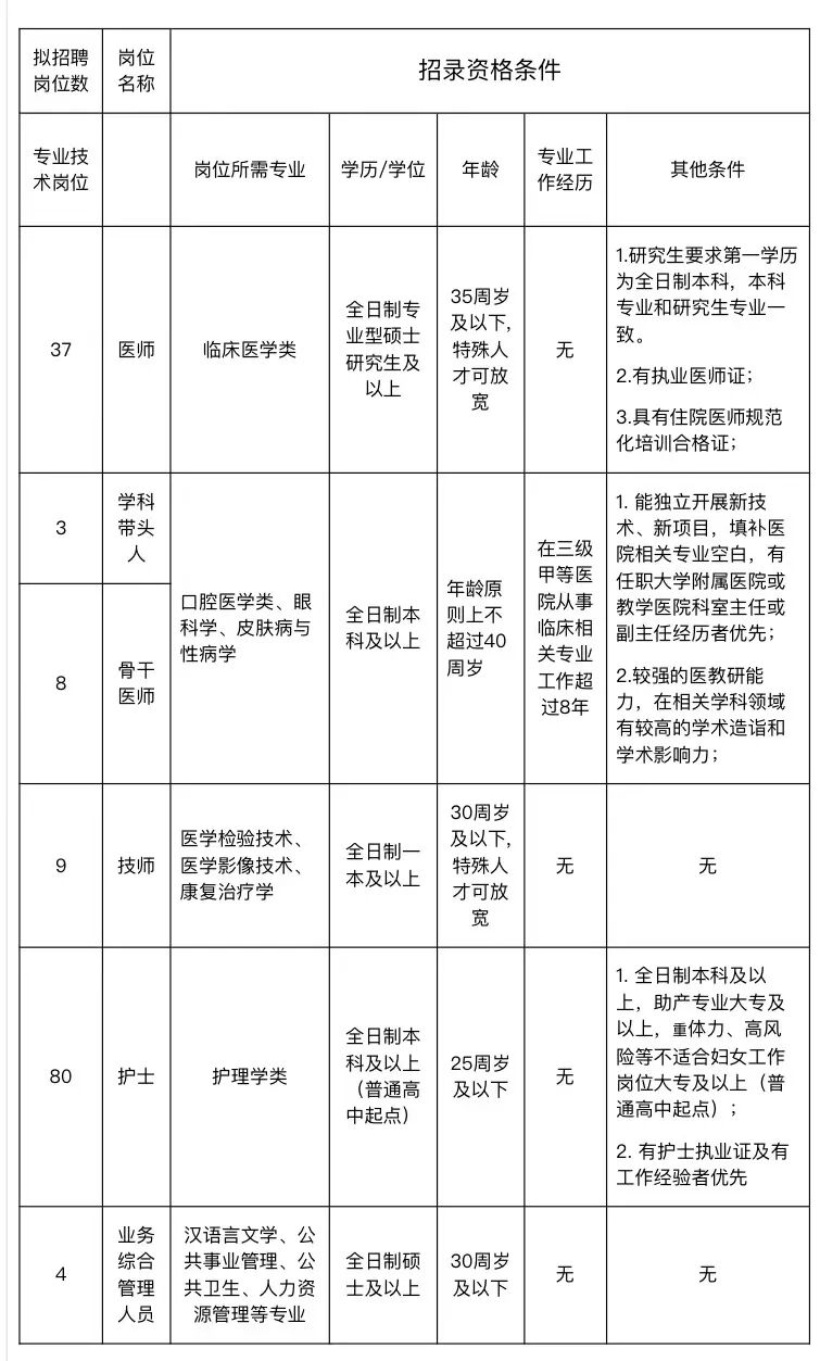 为进一步加强医院学科队伍建设,充实医院人才队伍,根据医院学科发展需要,结合医院实际工作情况,现面向社会公开发布我院2023年度专业技术人员招聘信息,具体岗位及要求如下: