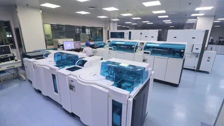 医院设备完善,设施齐全。拥有各类医疗设备3700台(套),其中原装进口1.5T核磁共振、64排128层螺旋CT、血管造影机、数字胃肠机、直线加速器等大、中型高端诊疗设备360余台(套)。深入推进“智慧医院”建设,目前已拥门诊住院电子病历、医学影像、实验室信息管理、重症医学信息、门诊预约挂号、自主叫号排队、办公自动化等系统,实现分时段预约诊疗、实验室管理、检查检验结果手机查询、门诊自动发药、住院口服药自动分包、静配中心管理、诊间结算、病区出入院办理、病房点餐等服务。