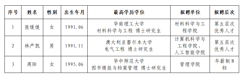 经学院(部)和人事处考查遴选,学校讨论决定拟引进下列教师岗位工作人员,现予以公示。