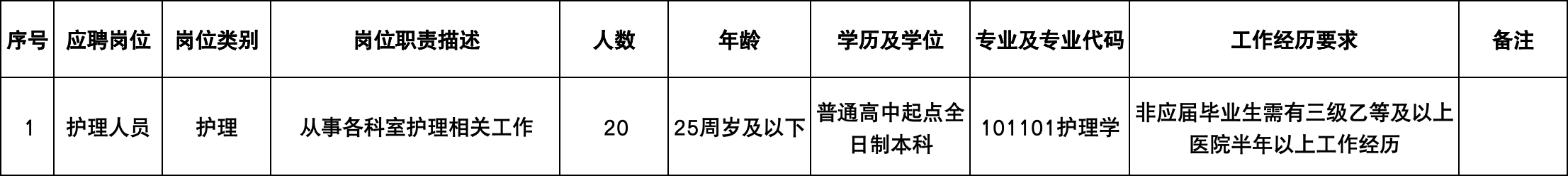 2.年龄、工作经历等要求:原则上普通高中起点全日制本科毕业生25周岁以下,护理专业研究生30周岁以下。非应届毕业生须持有护士执业证书,并提供三级乙等及以上医院半年以上工作经历证明。应届生若被录用,须在2025年内取得执业证书或成绩合格单,否则将被取消录用资格,解除劳动合同。