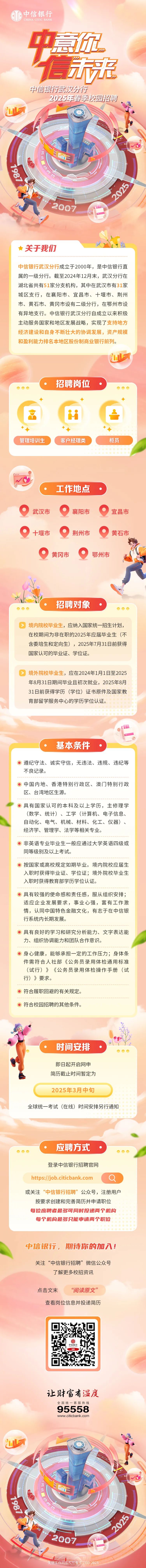标签: 中信银行武汉分行2025年春季校园招聘 1.中信银行 校园招聘 2.武汉分行 校园招聘 3.2025春季招聘 4.银行校园招聘 5.中信银行武汉分行职位