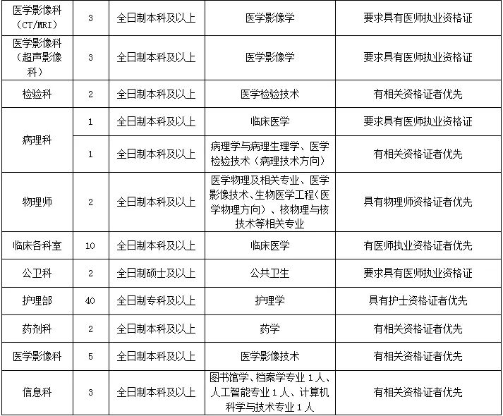 3、护理专业要求:身高女生1.60米及以上,男生1.70米及以上;往届生年龄不超过28周岁且必须取得护士资格证,2025年应届生年龄不超过23周岁;临床医学专业要求:年龄不超过30周岁,特别优秀者可适当放宽年龄,往届生必须取得医师资格证;其他专业要求:年龄不超过30周岁。