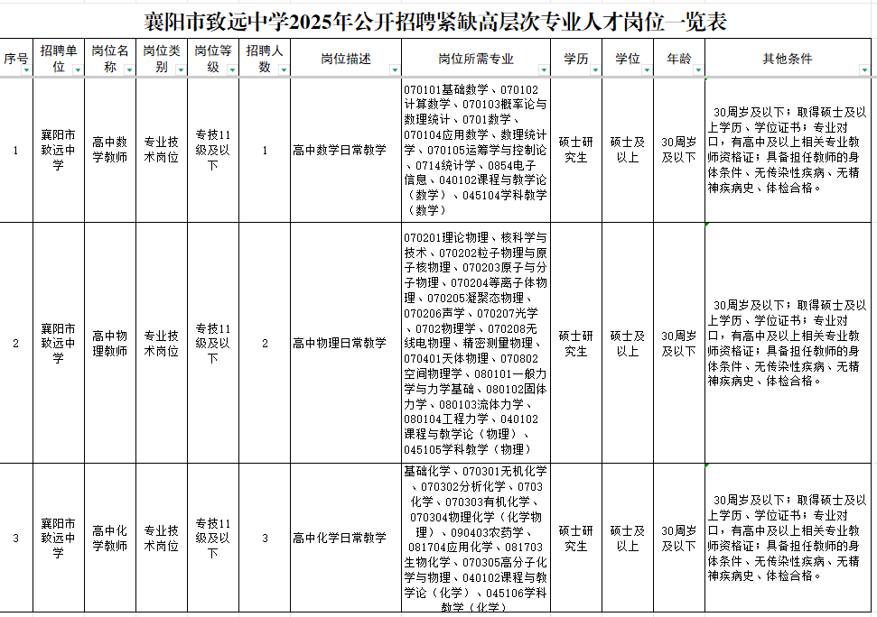 附件:1.襄阳市致远中学2025年公开招聘急需专业技术人才岗位一览表