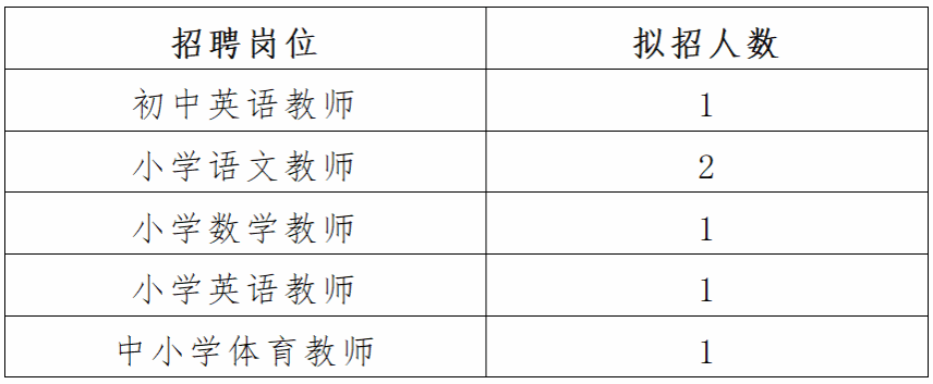 根据工作需要,现面向社会公开招聘中小学教师6名。经考核合格并同意录用人员,以劳务派遣方式聘用,享受工资、“五险一金”、工会福利、班主任津贴和绩效奖等待遇。