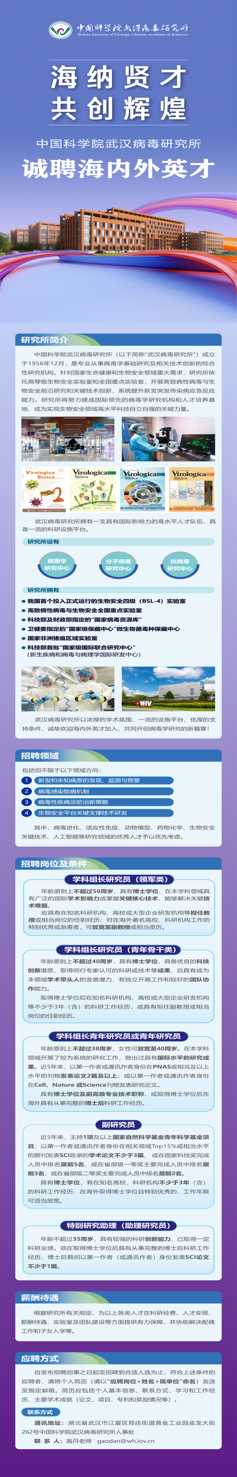 【合同制】中国科学院武汉病毒研究所“诚聘海内外英才”(常年有效)