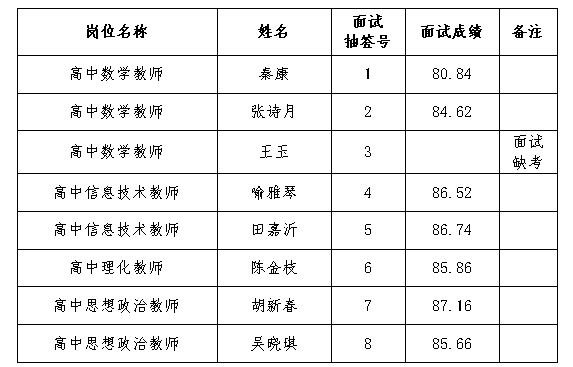 根据《红安县教育系统2025年赴高校公开招聘教师公告》相关规定,经过现场报名、资格审查、面试等程序,现将考生面试成绩公告如下: