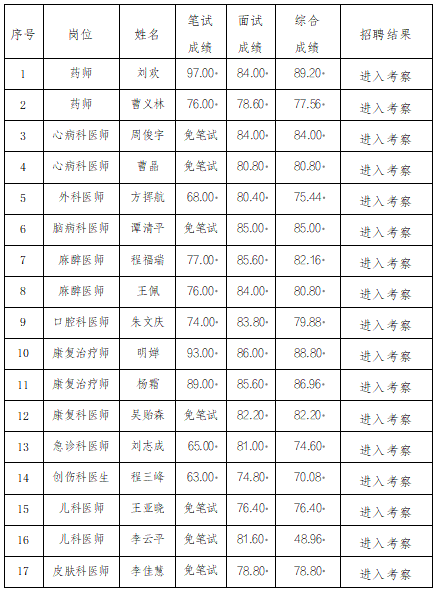 护理人员公开招聘进入考察人员名单