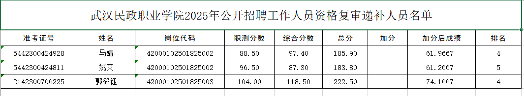 附:1.武汉民政职业学院2025年公开招聘工作人员资格复审递补人员名单