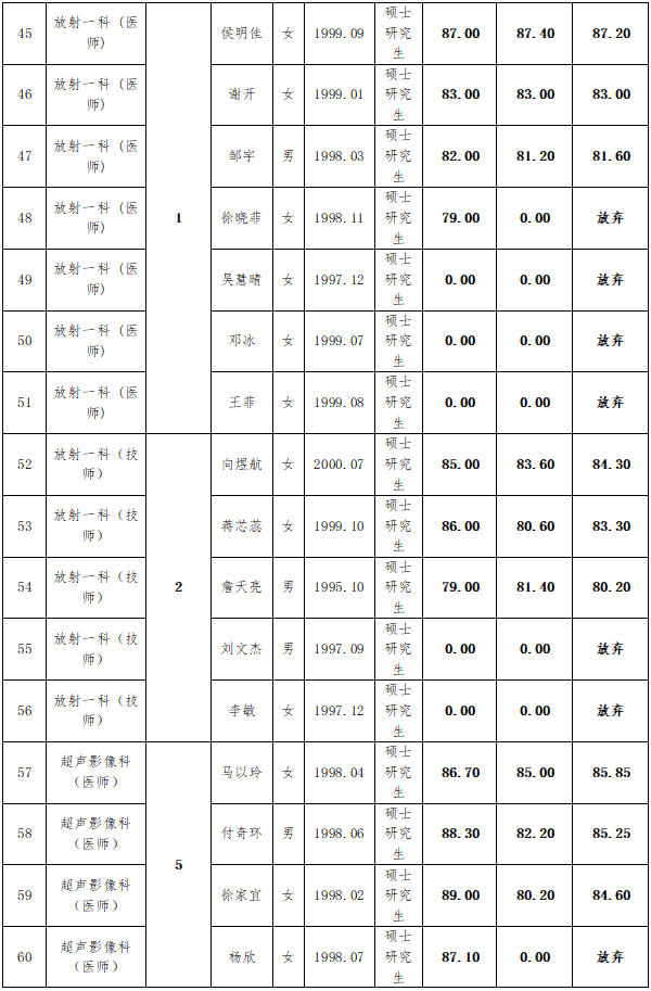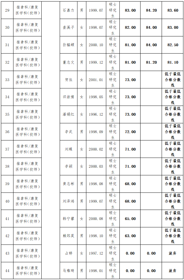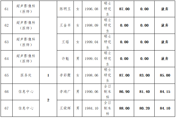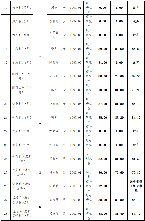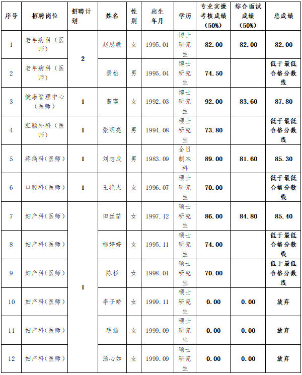湖北省中医院(湖北中医药大学附属医院)因业务发展需要,面相社会公开招聘编外聘用工作人员,经个人报名、资格审核、专业实操考核、综合面试环节,现将考生总成绩予以公示。