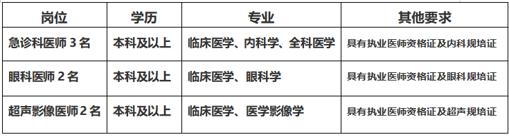 为加强医院人才队伍建设,优化专业技术人员结构,满足临床科室工作需要,根据《事业单位公开招聘人员暂行规定》及《松滋市卫生健康系统编外人员管理暂行办法》等文件精神,经市卫生健康局党组同意,面向社会招聘从事急诊、眼科、超声影像科医师7名。现将有关事项公告如下: