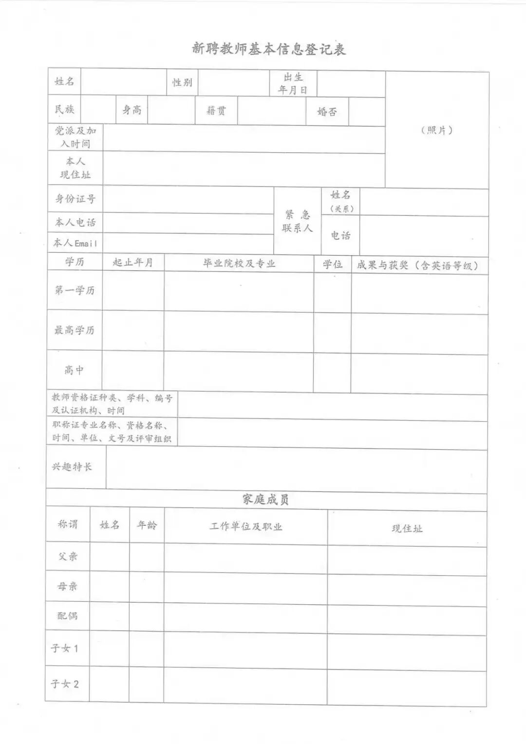 附件:新聘教师基本信息登记表