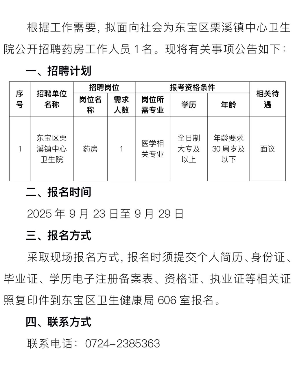 标签: 东宝区卫健局 2025年招聘 临时聘用 卫生专业技术人员 公开招聘公告