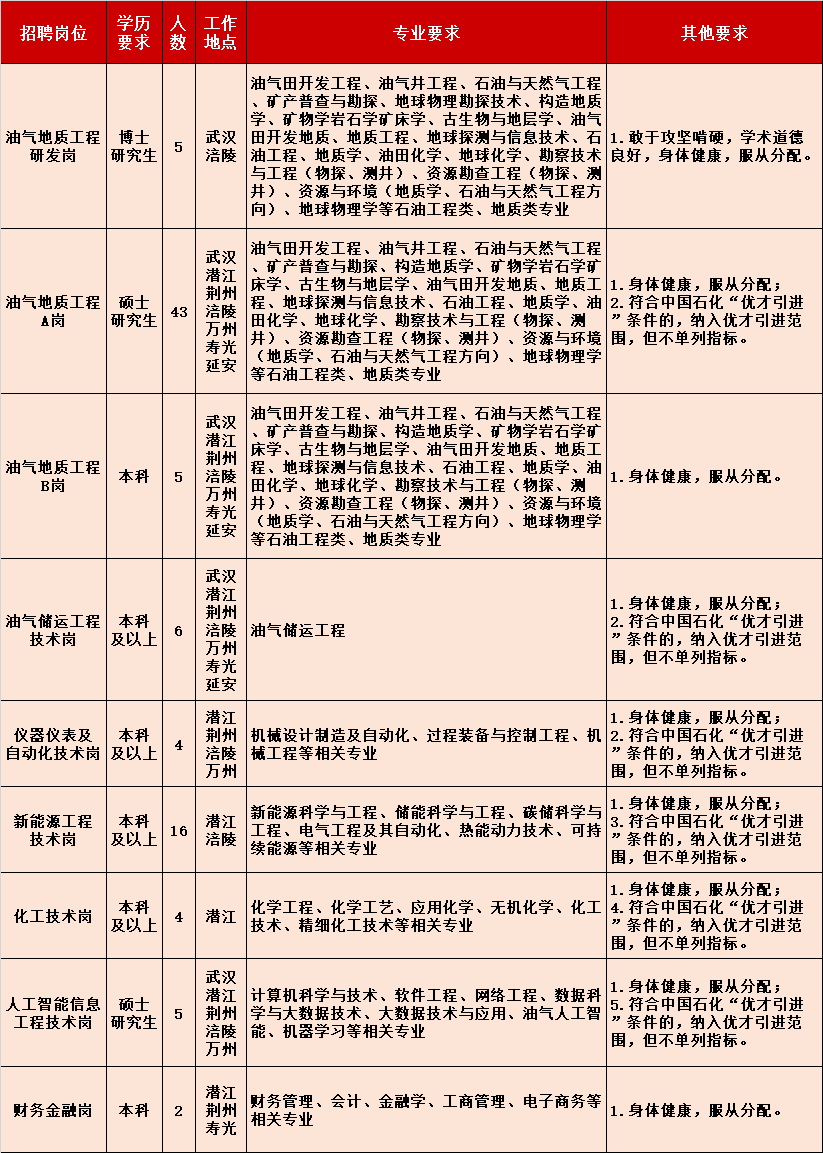 注:以中国石化招聘网站信息为准。