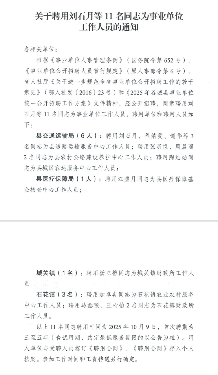 谷城县医疗保障局所属事业单位2025年公开招聘工作人员情况