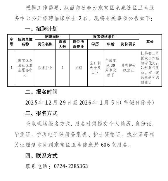标签: 东宝区卫健局 2025年招聘 临时聘用 卫生专业技术人员 公开招聘公告
