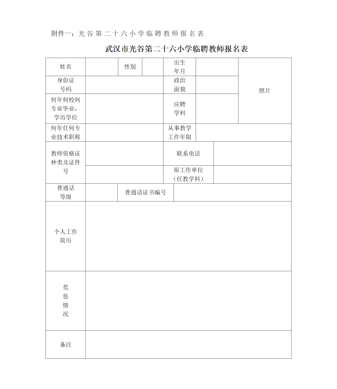 由于学校发展需要,光谷二十六小面向社会公开招聘校聘教师,具体条件和学科等情况如下: