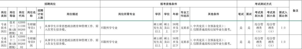 因工作需要,我校现通过湖北省事业单位2026年统一公开招聘平台,面向社会公开招聘专职辅导员14人,具体岗位及报考条件如下: