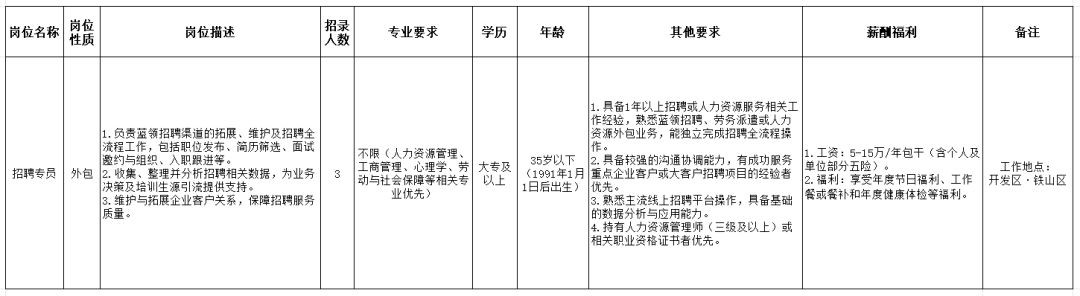 为满足业务扩展及团队优化需要,现面向社会公开招聘工作人员3名,具体要求如下: