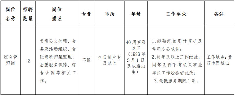 根据工作需要,黄石市文化和旅游局拟向社会公开招聘政府雇员2名,现将有关事项公告如下: